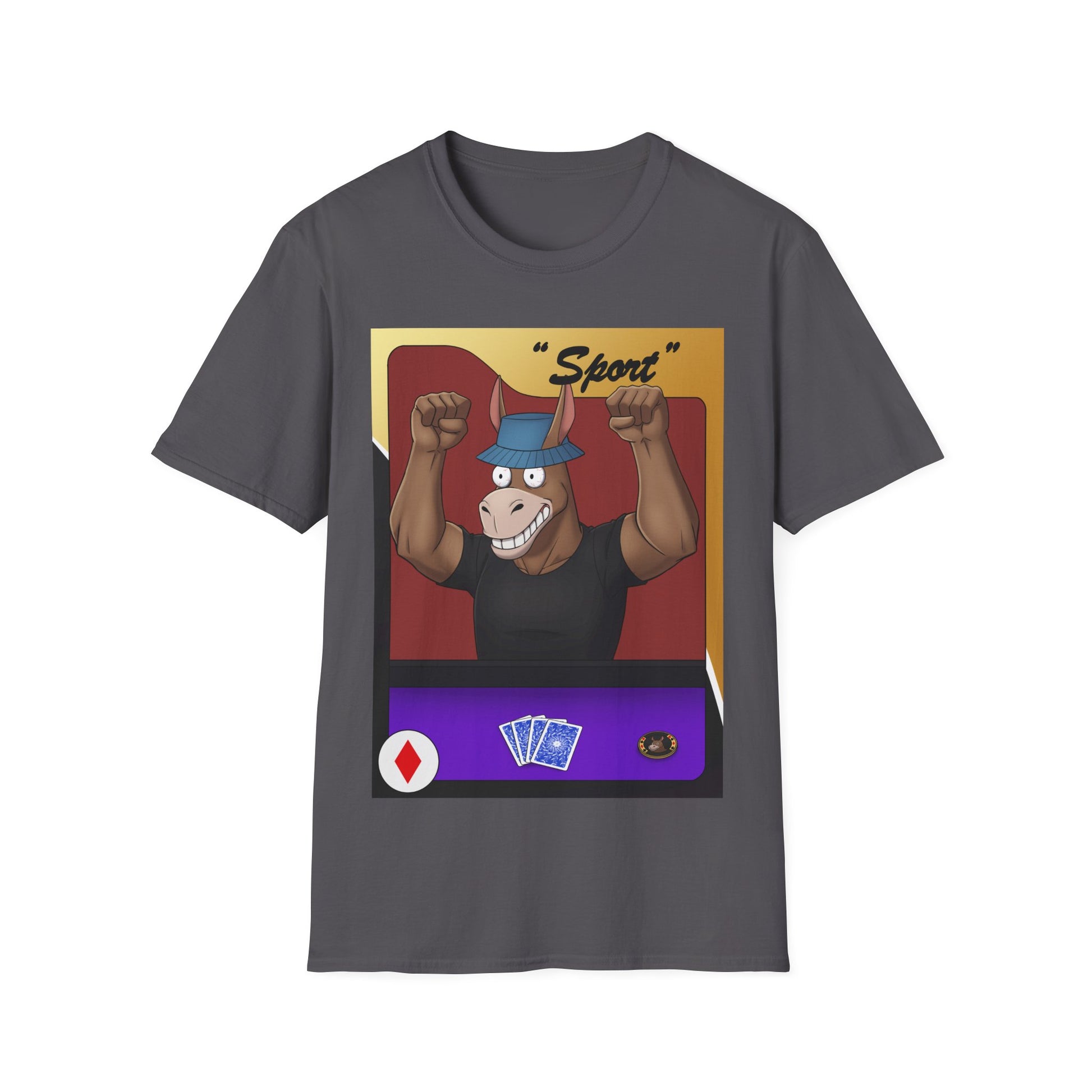 You play poker, so let the world know with this unisex soft-style t-shirt that puts a new spin on casual comfort. Using selected items from the Degen Donkey NFT Collection, this shirt is made from very soft materials, this tee is 100% cotton and the shoulders have twill tape for improved durability. There are no side seams and the collar is made with ribbed knitting to prevent curling damage.