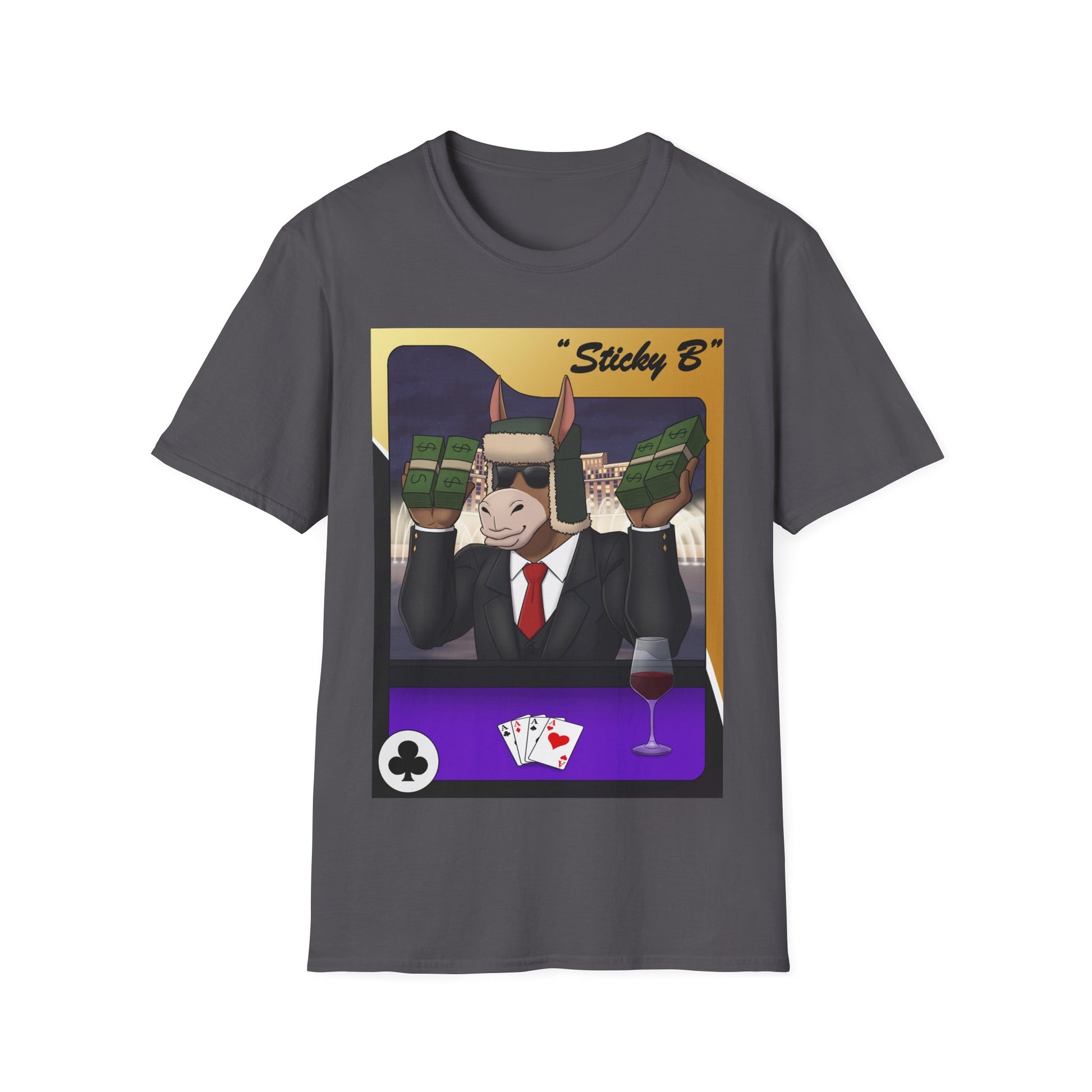 You play poker, so let the world know with this unisex soft-style t-shirt that puts a new spin on casual comfort. Using selected items from the Degen Donkey NFT Collection, this shirt is made from very soft materials, this tee is 100% cotton and the shoulders have twill tape for improved durability. There are no side seams and the collar is made with ribbed knitting to prevent curling damage.